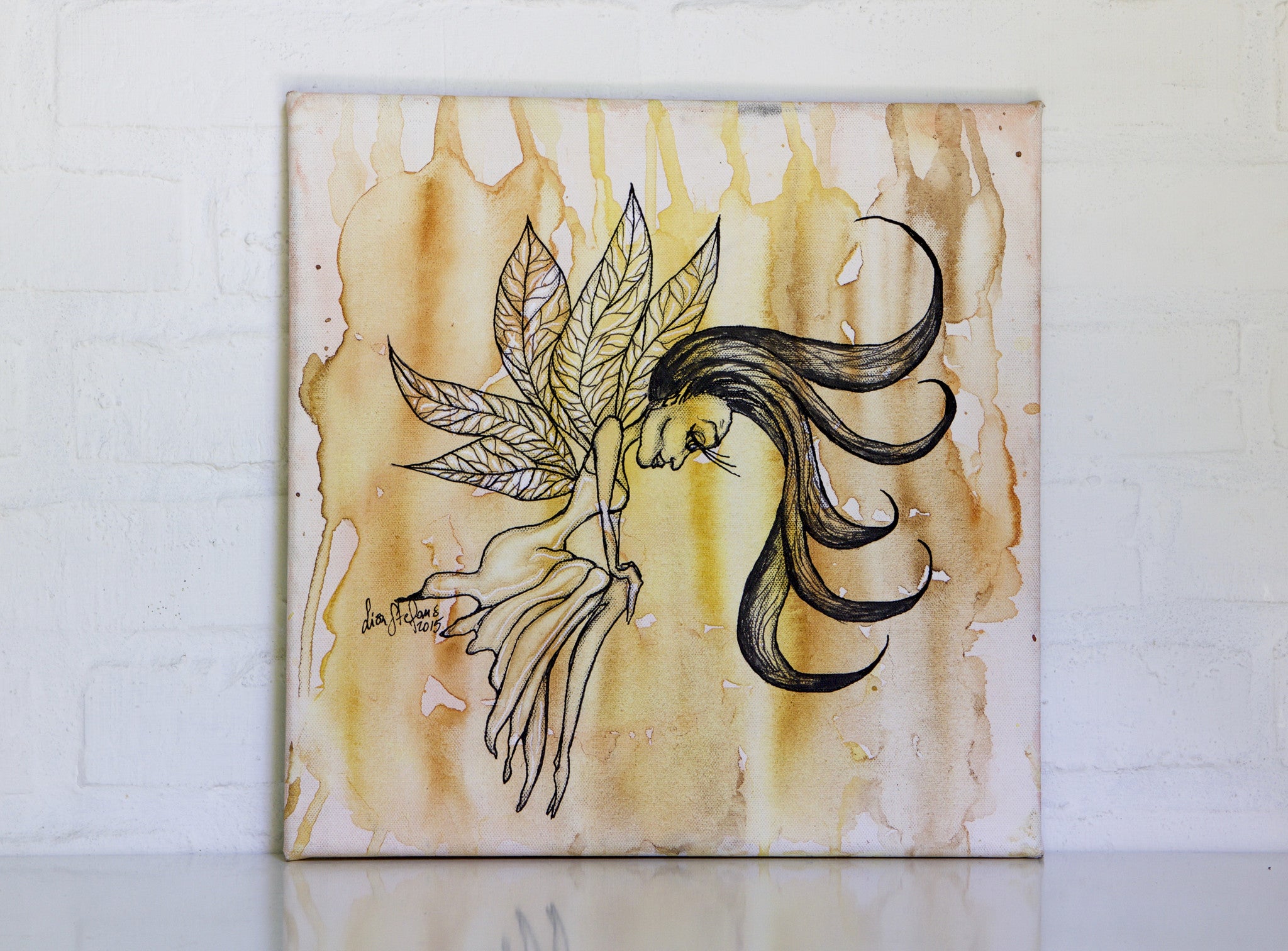 I worked on this series in the summer of 2015 while staying at the artist residency in Skriðuklaustur in Iceland. While connecting to the beautiful nature, animals and the fairies in the stilness in Iceland I let my inner child play and go wild.