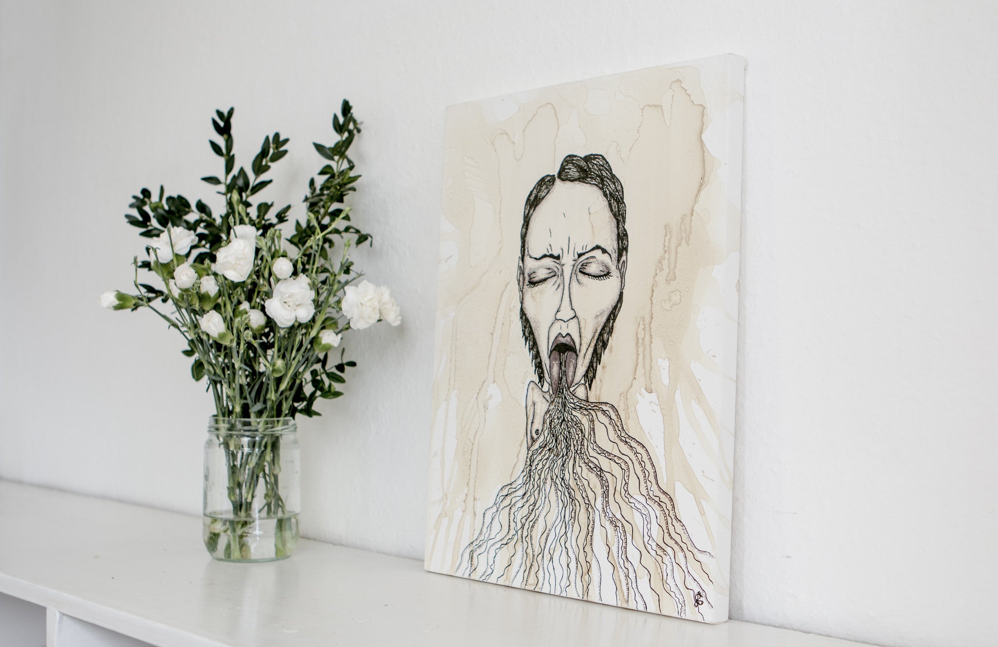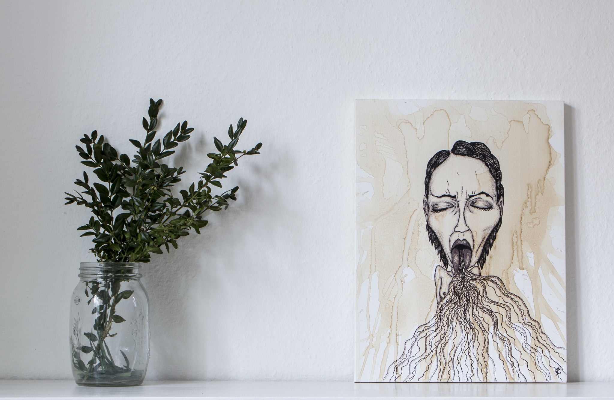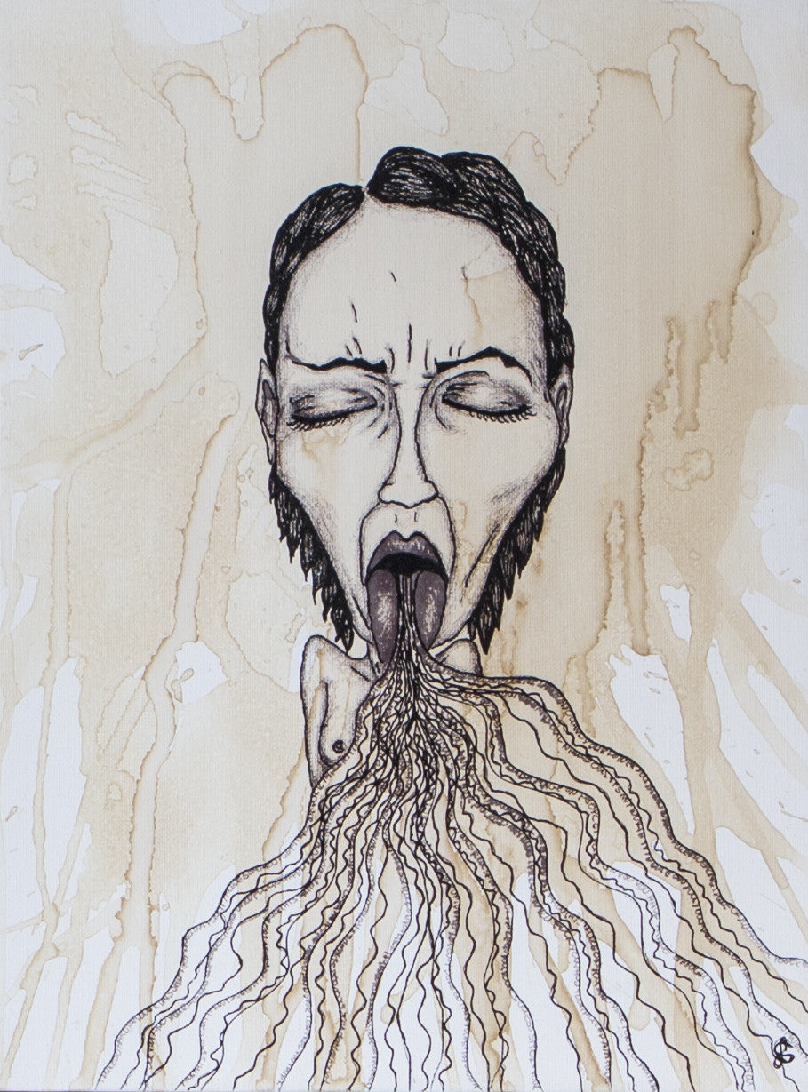Coffee and acrylic on canvas